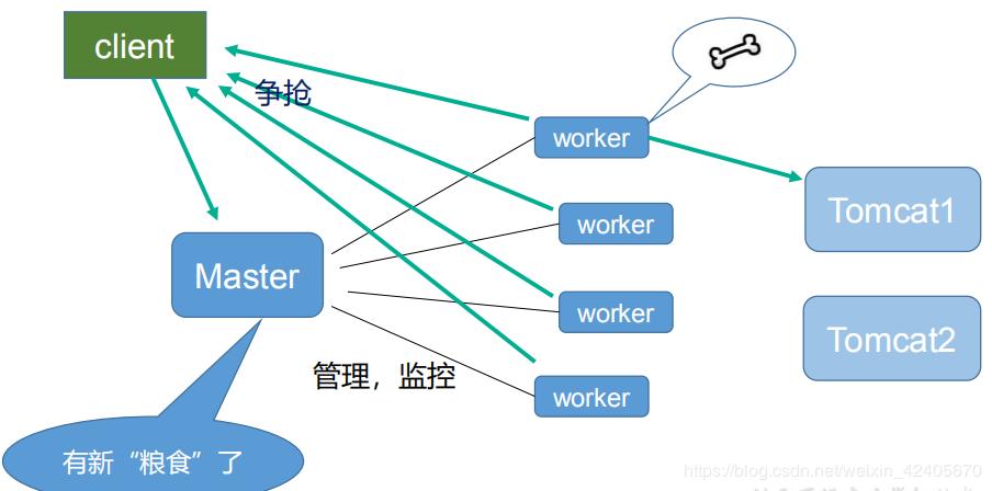 - 每个 woker 是独立的进程,如果有其中的一个 woker 出现问题,其他 woker 独立的, 继续进行争抢,实现请求过程,不会造成服务中断